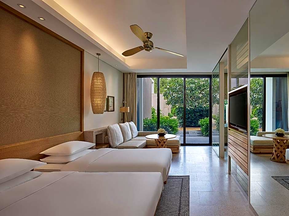 Earth tones and contemporary furnishings welcome visitors to this three-bedroom residence with its three king beds topped with feather pillows. Large sliding balcony doors usher the outside in, while marble finishes enhance the private bathrooms. Conveniences include full kitchen, separate sitting area, room service during regular hours, roll-aways upon request, separate work area and complimentary wireless Internet access.